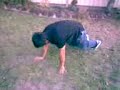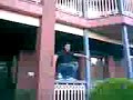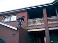Description: Latino dude jumps off the roof and lands into an almost perfect ninja roll, first time |